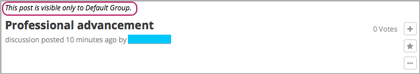 A discussion topic post with "This post is visible to Default Group" above the title.