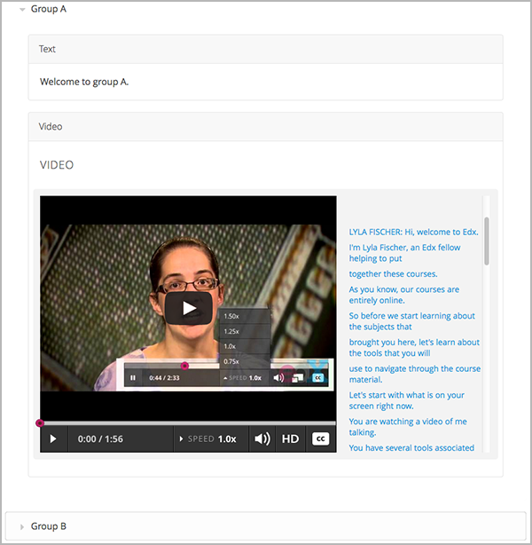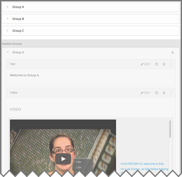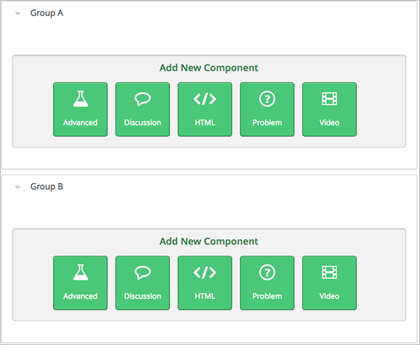 • Modify group names as needed. You see group names in the unit page in Studio, but group names are not visible to learners.