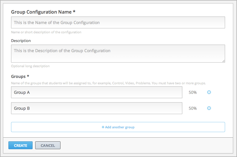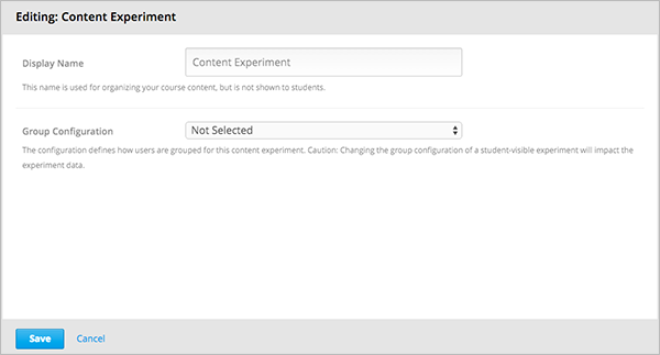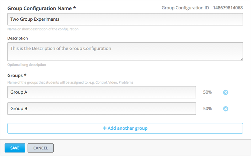 2. Enter a name in the Group Configuration Name field. Use a meaningful name, because you will select from group configuration names when you create content experiments. Learners do not see the group configuration name.