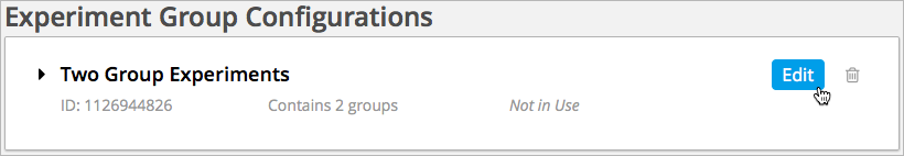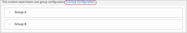 On the Group Configurations page, select the name of a group to see its details. You see links to the content experiments that use this group configuration.