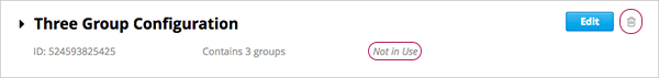 1. On the Group Configurations page, hover over the group configuration and select the Delete icon.