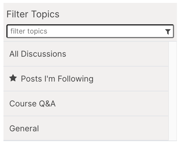 Make sure each discussion topic in your course has a unique name, whether it is a course-wide topic or a content-specific discussion topic that you add as a discussion component. If different discussion topics share the same name, learners might be confused as to which discussion topic they are participating in. For example, do not add a content-specific discussion topic named “General”, because a course-wide discussion topic named “General” already exists in every course.