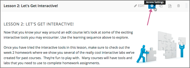 2. On a unit page, for each component for which you want to restrict access to, select the Access Settings icon.