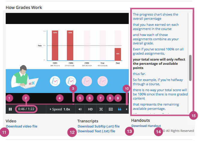 13. Handouts: You can download any handouts that the course team has associated with the video.