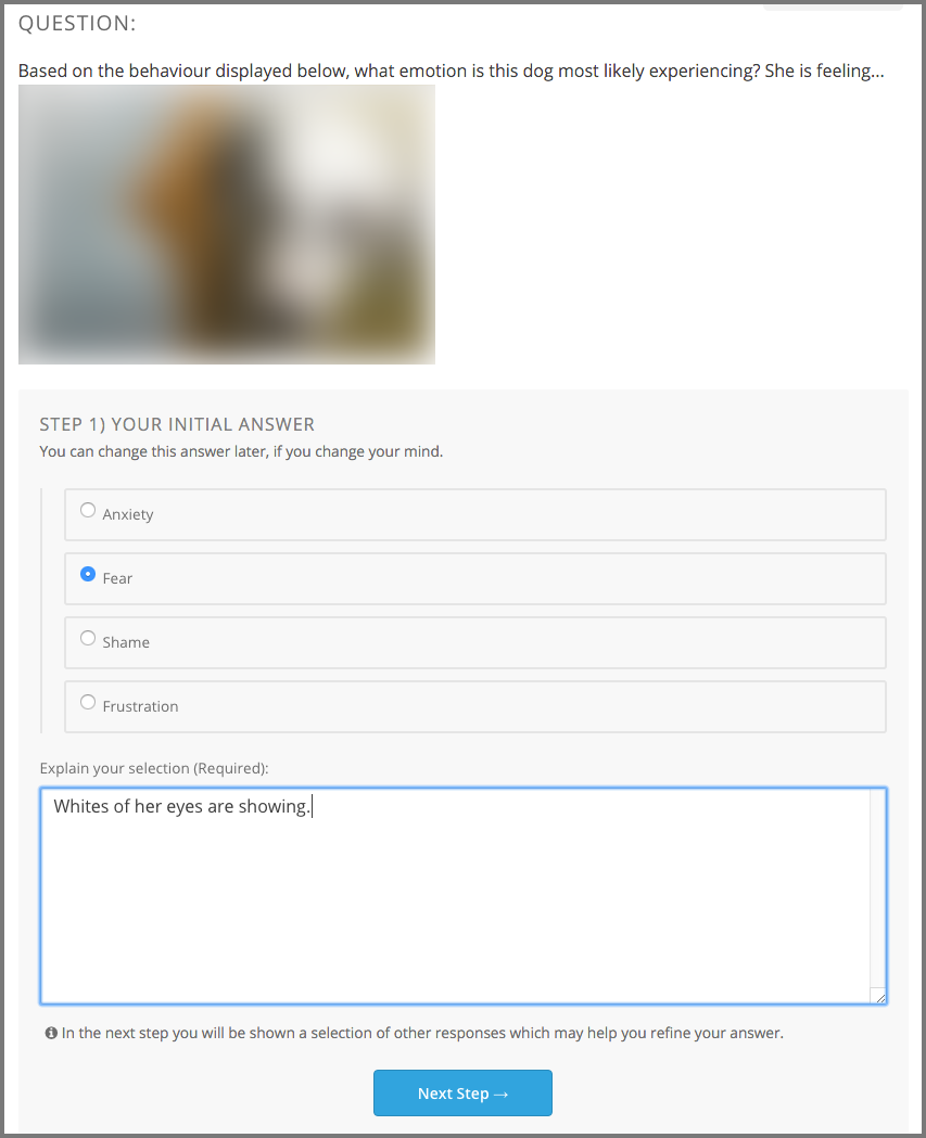 When a multiple choice question also requires an explanation, the next step in the assignment is to share your rationale for your answer with other learners, and to see the choices and explanation that other learners shared.